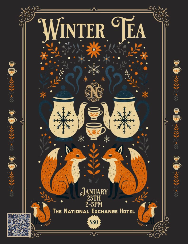 Settle in upstairs in the Empire Room for an unhurried winter afternoon of exotic teas and handmade delicacies, served with all the charm this old hotel does best. Think warm cups, sweet and savory bites, and the kind of easy conversation that makes January feel a little softer. Chandeliers overhead, history in the walls, and a table that invites you to linger just a touch longer.