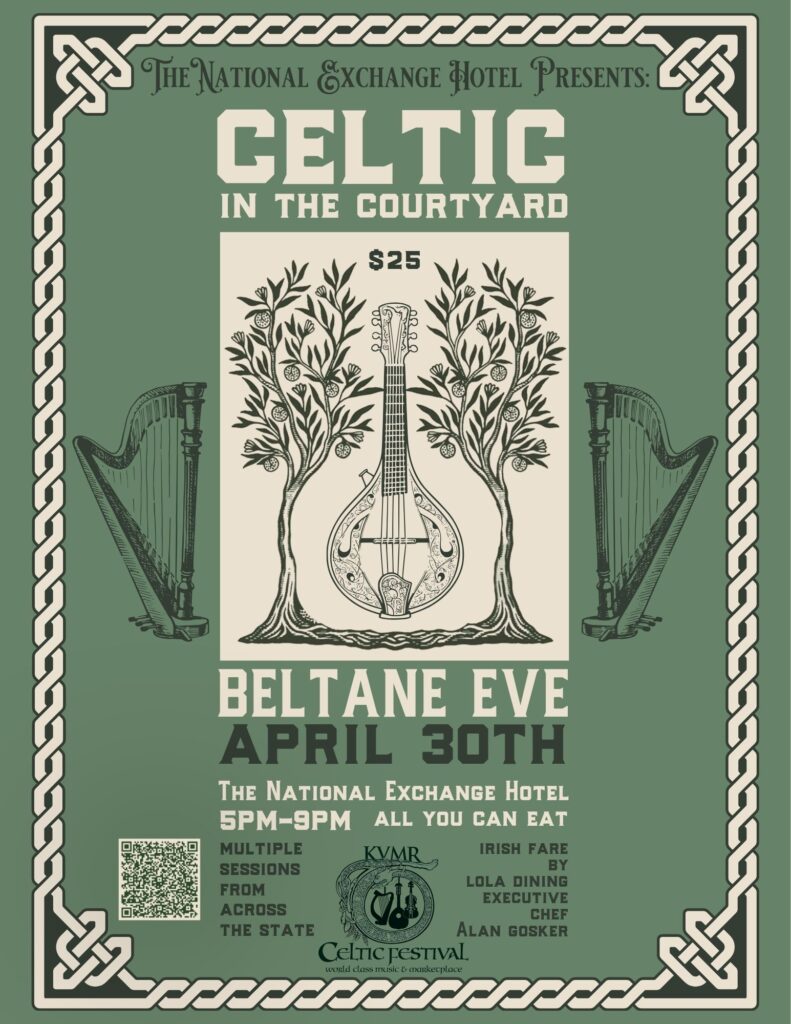 The KVMR Celtic Festival weekend gets its proper start in our historic courtyard. On the eve of Beltane, the ancient May Day that marks summer’s return, The National hosts a night of roving Irish music sessions with renowned Celtic performers from across California weaving through the halls and into the evening air. All the while, Chef Alan Gosker draws on his Galway roots for an all-you-can-eat Irish buffet worthy of the occasion. It’s the kind of night Nevada City does better than anywhere.